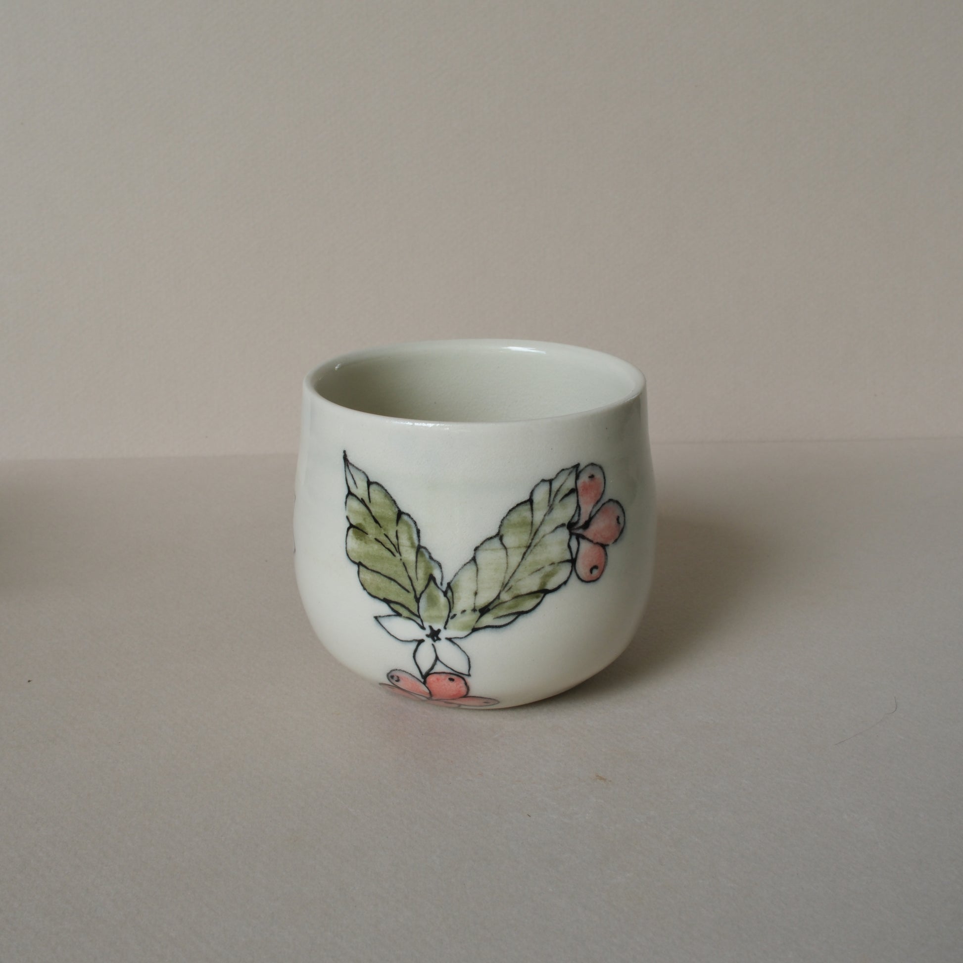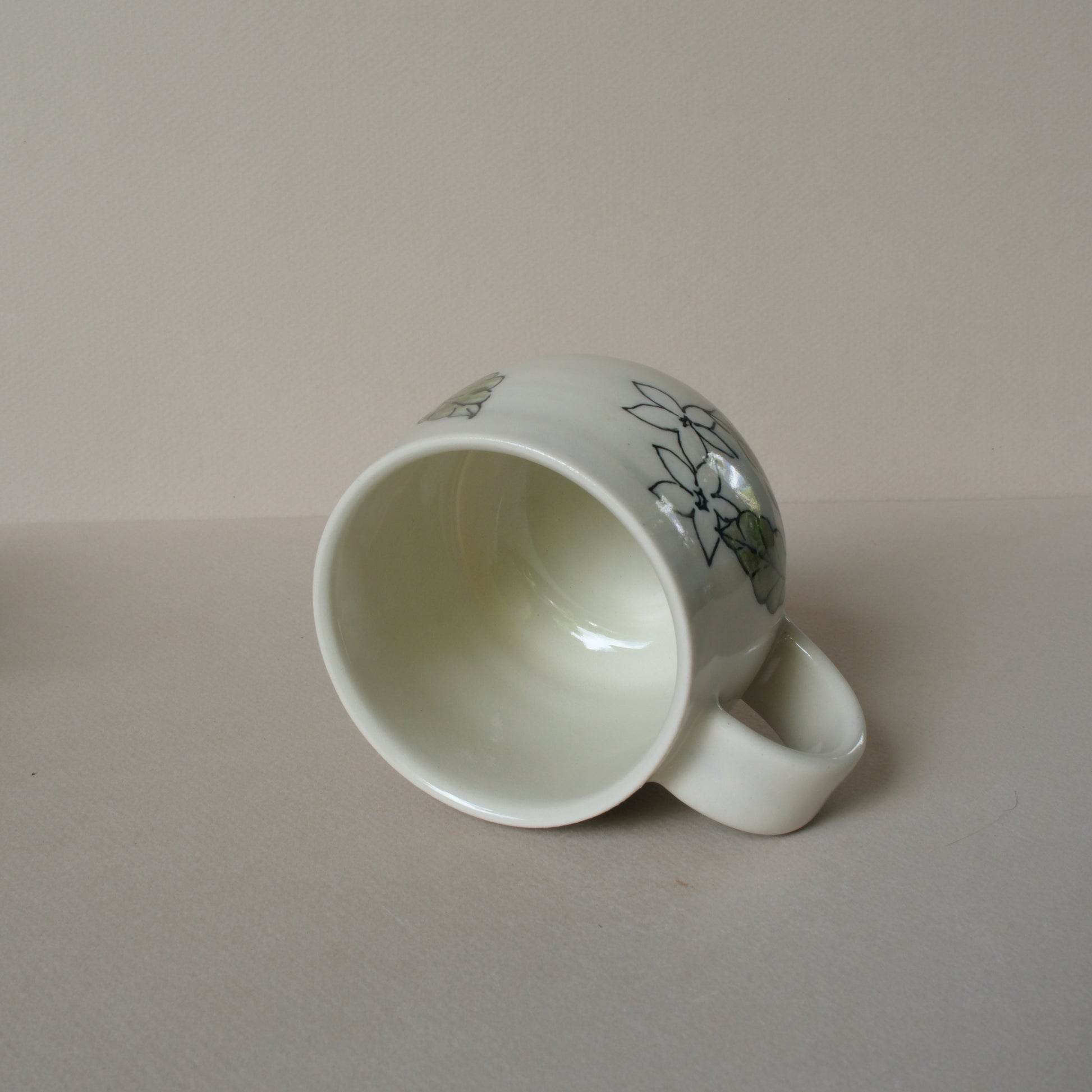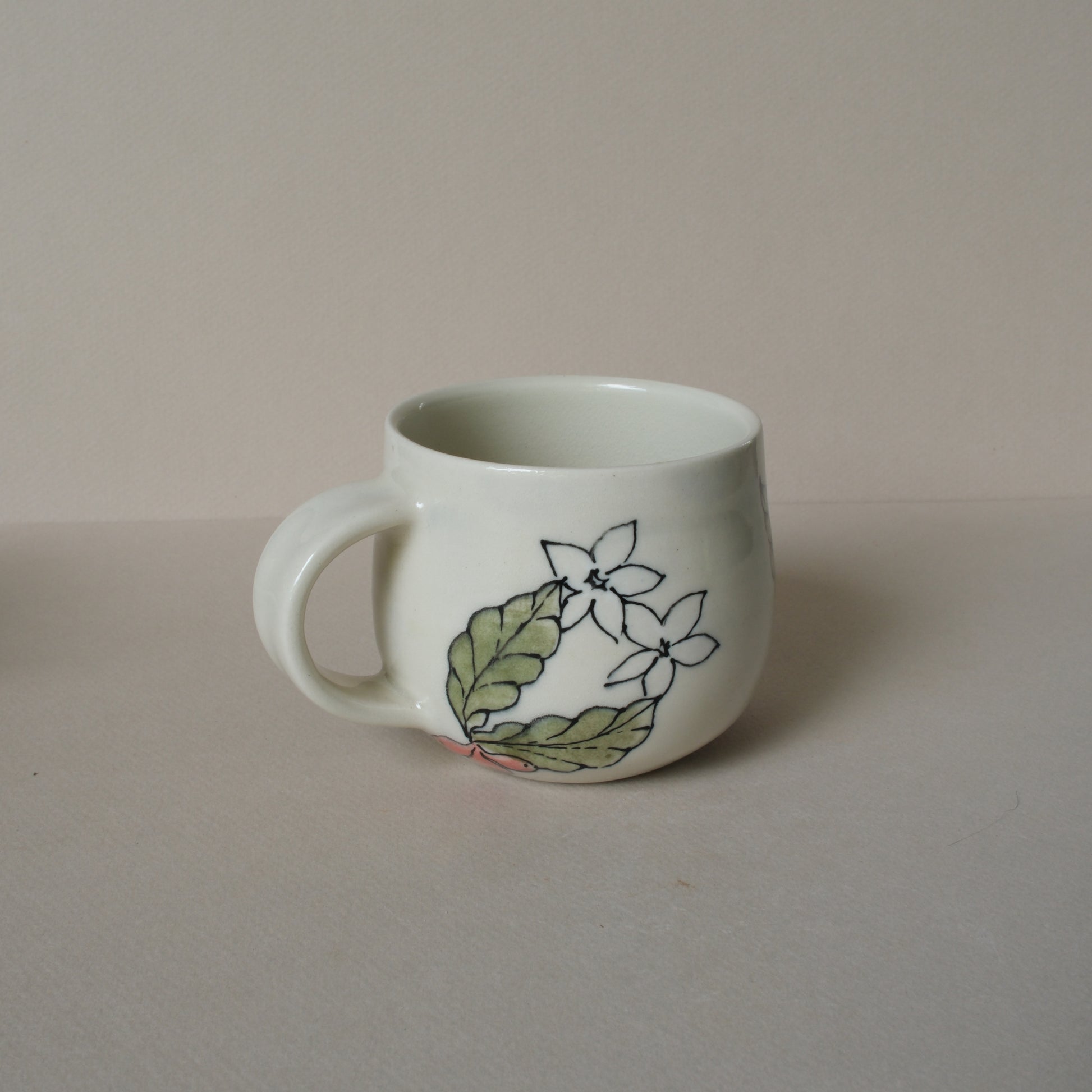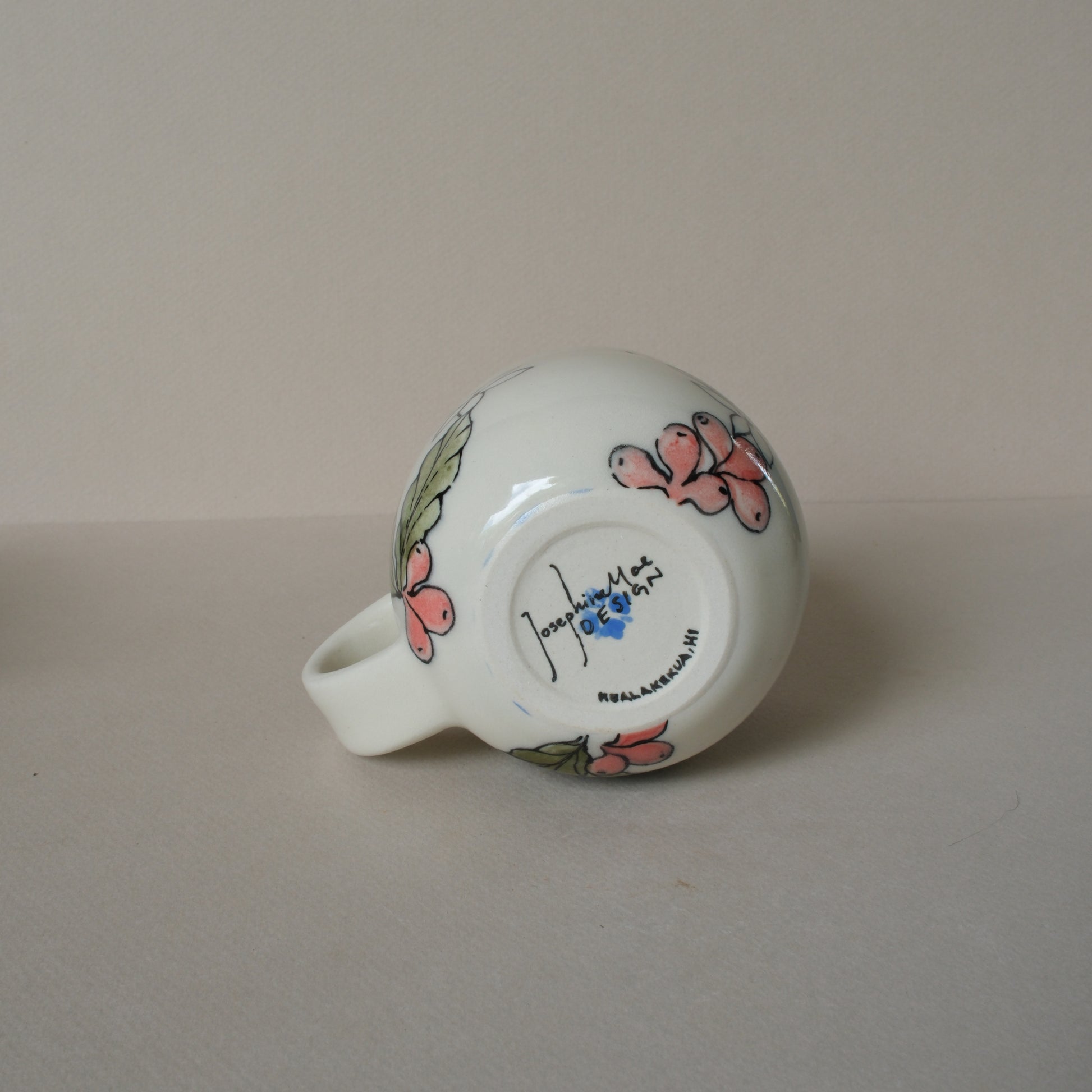 This Special 100% Kona Coffee Stamp Collection features a stamp decal designed by Josephine and printed on handmade pieces. They are durable for regular use and ware, including microwave and dishwasher use.