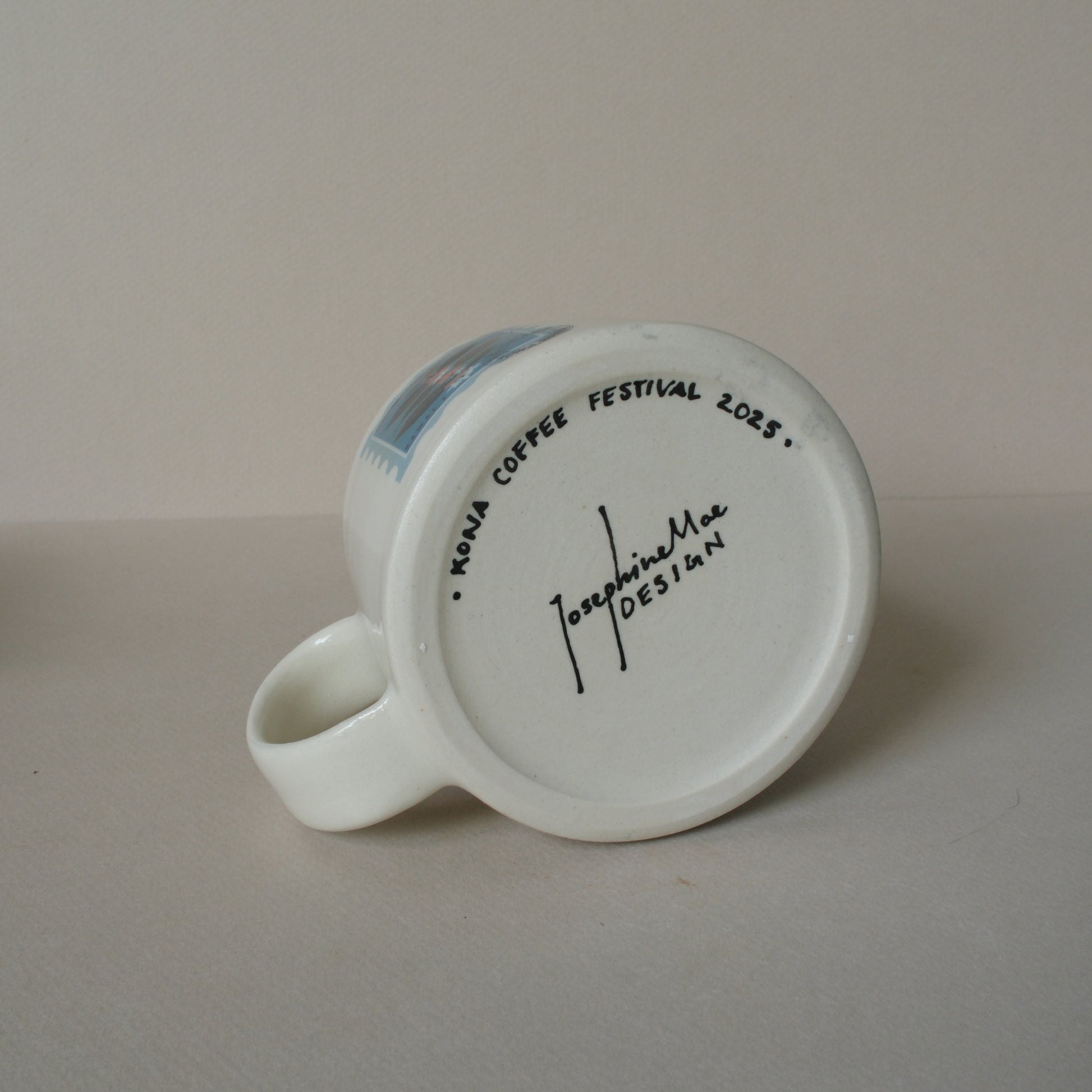 This Special 100% Kona Coffee Stamp Collection features a stamp decal designed by Josephine and printed on handmade pieces. They are durable for regular use and ware, including microwave and dishwasher use.