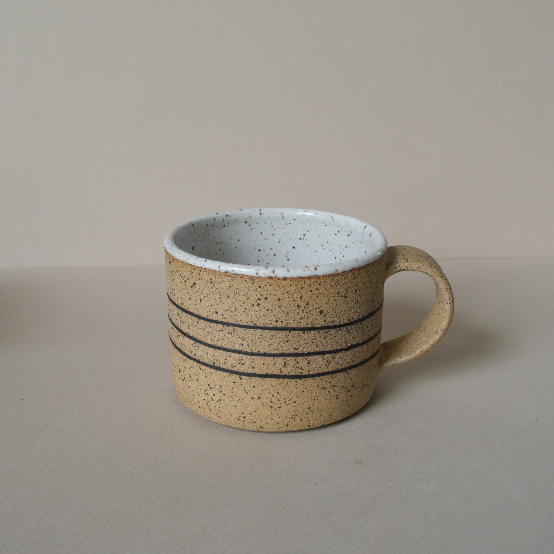 Spiral Mug with hand-painted designs on Speckled stoneware.