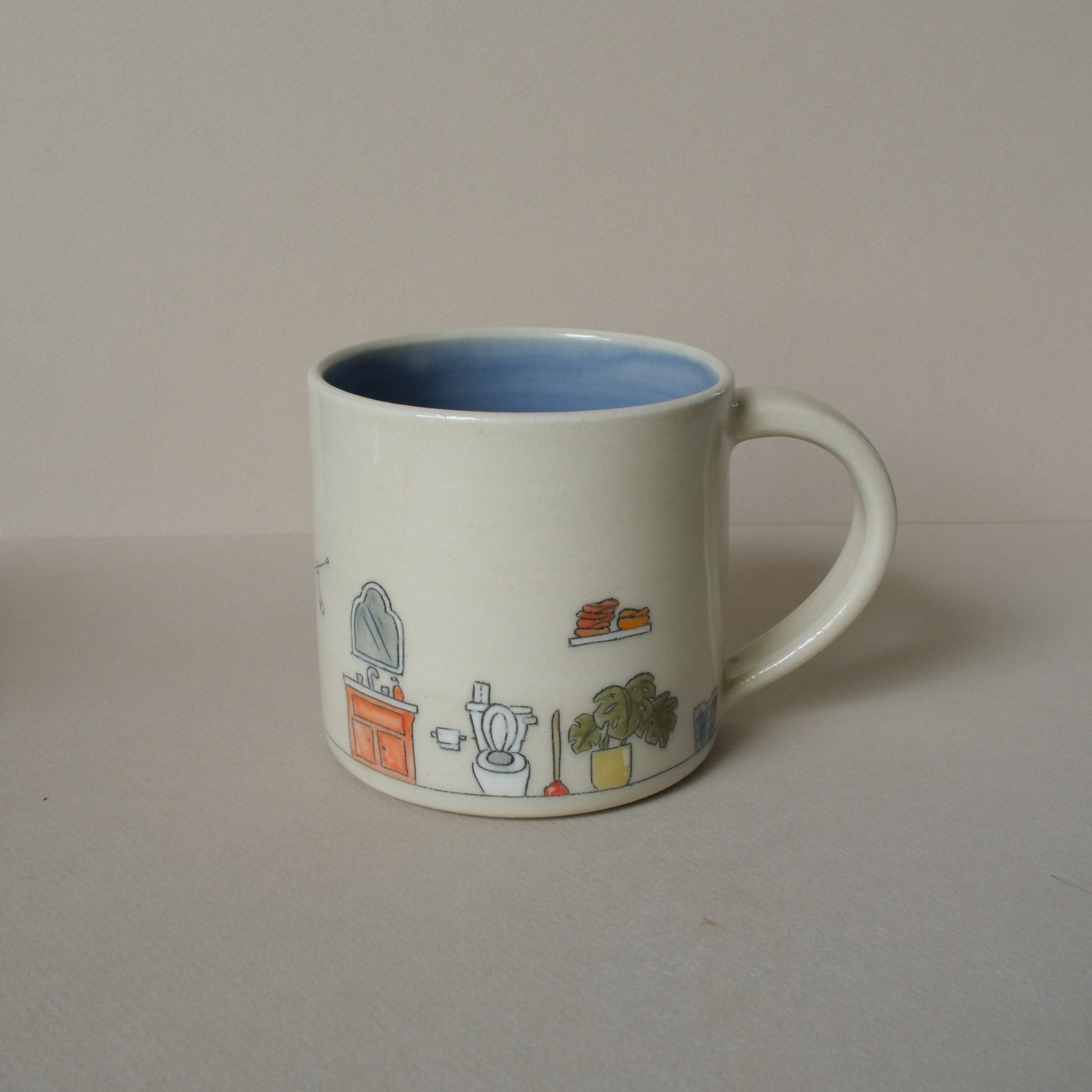 Home Scene with clear glaze top coat on white stoneware.