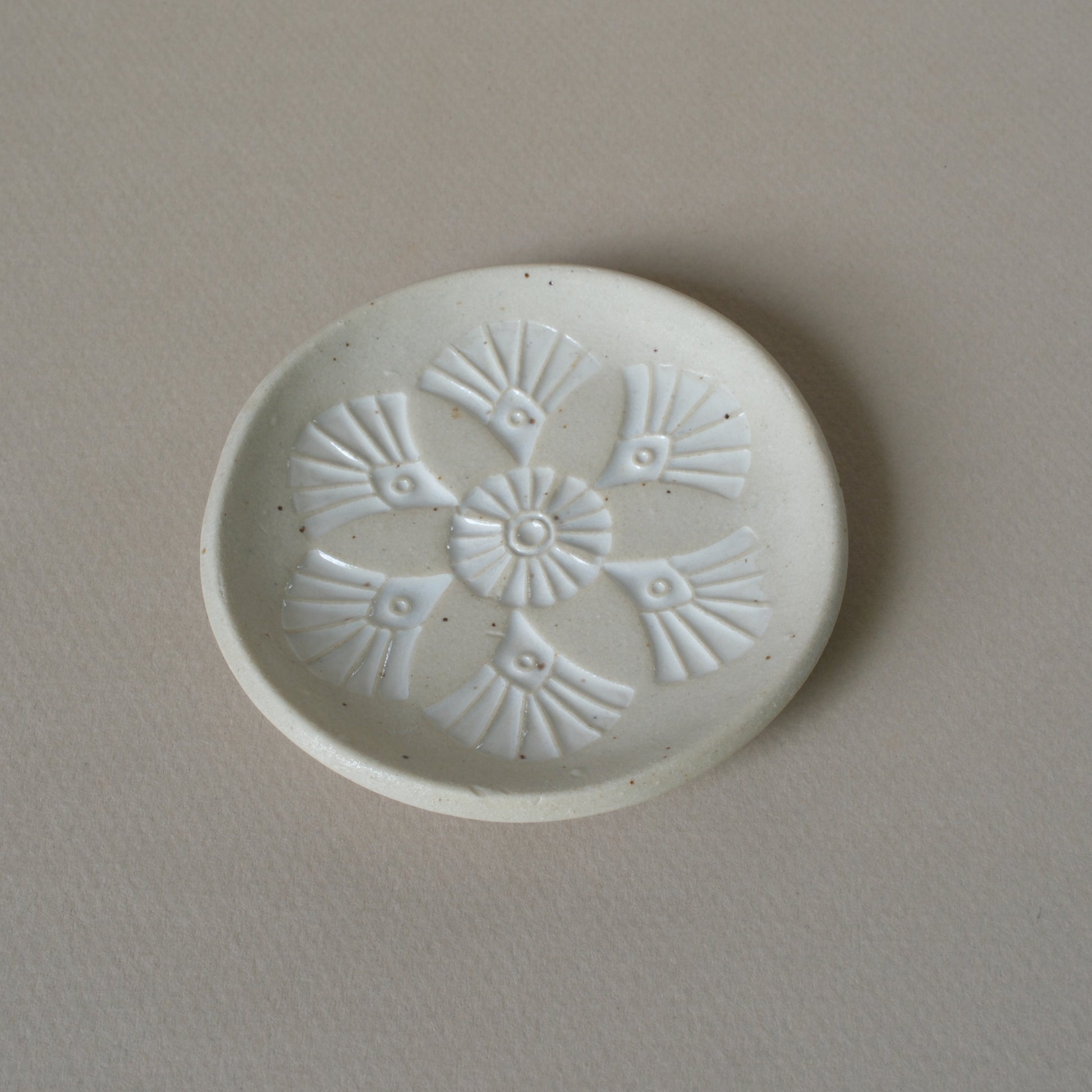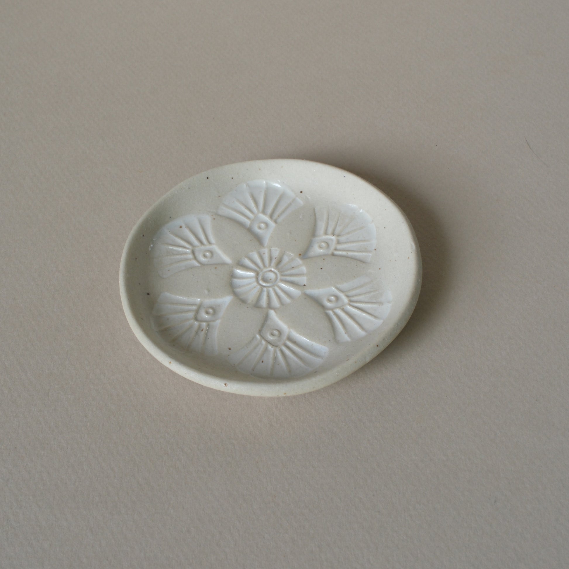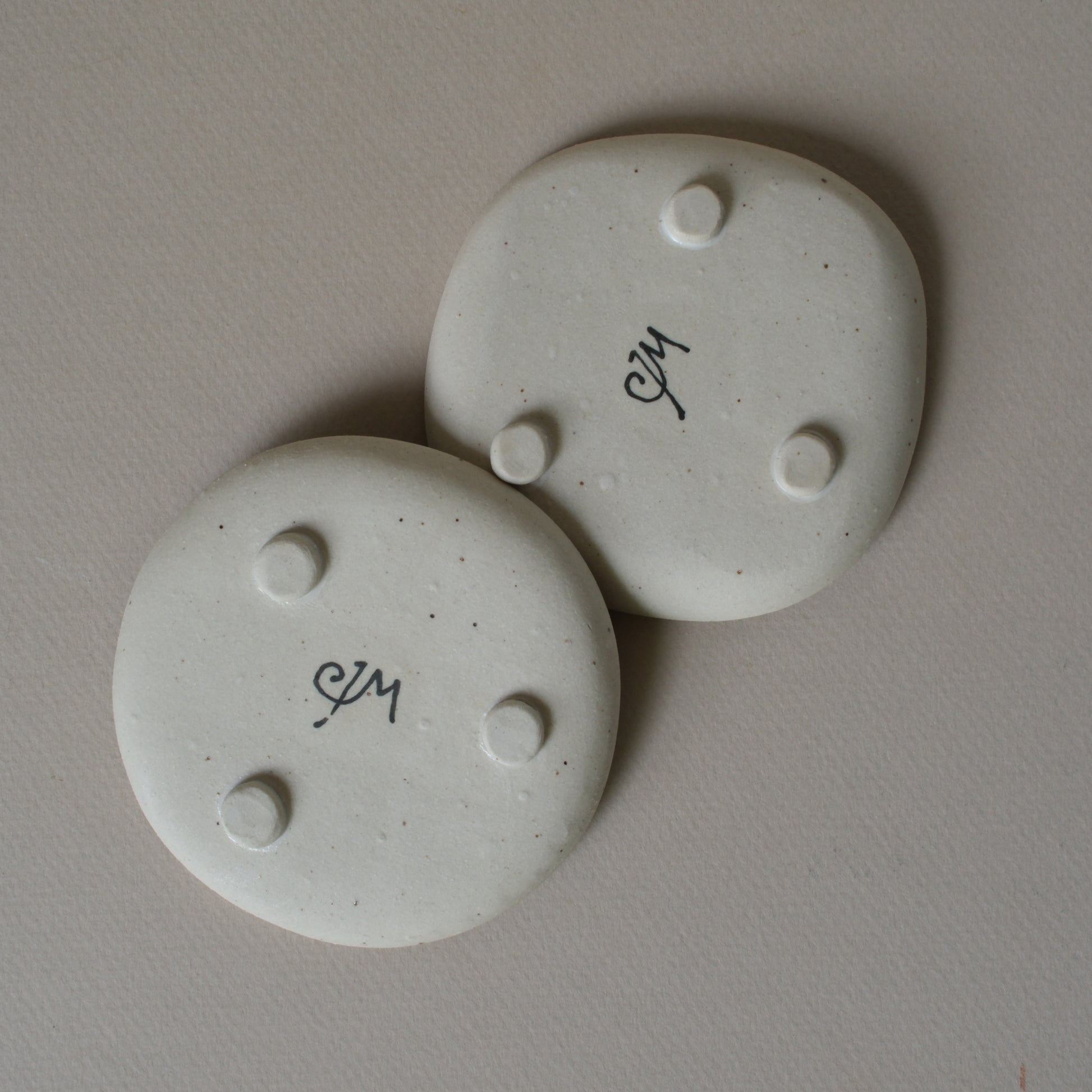 Trinket Dishes for your knickknacks with white glaze details on raw Recycled Stoneware.