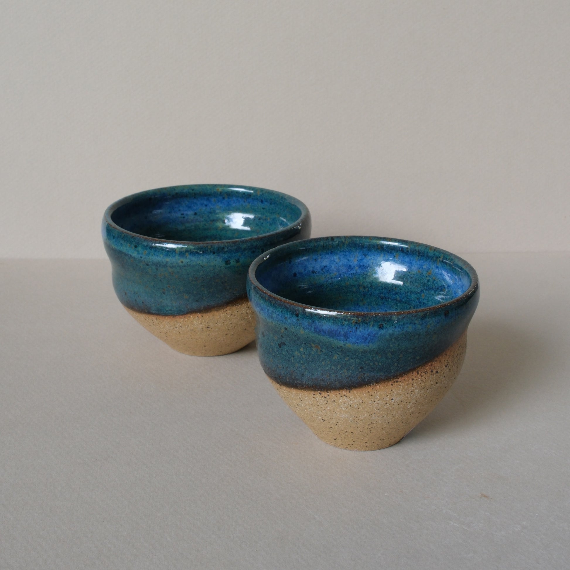 Tea Cups in Tidepool glaze on speckle stoneware.